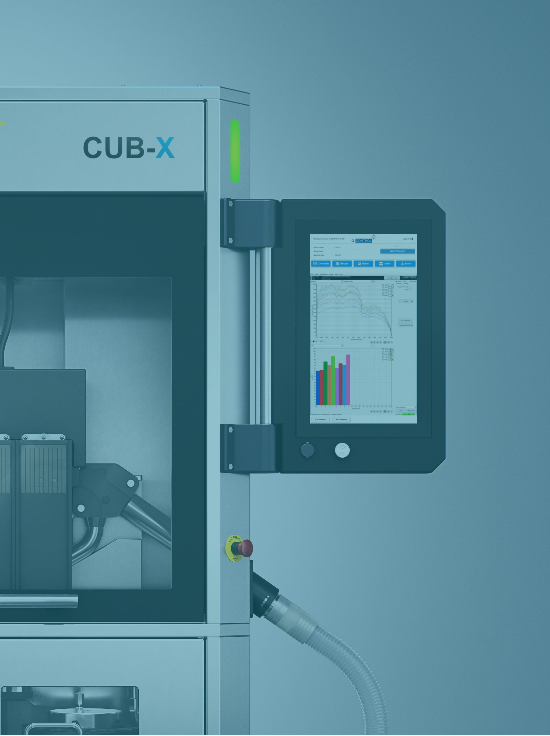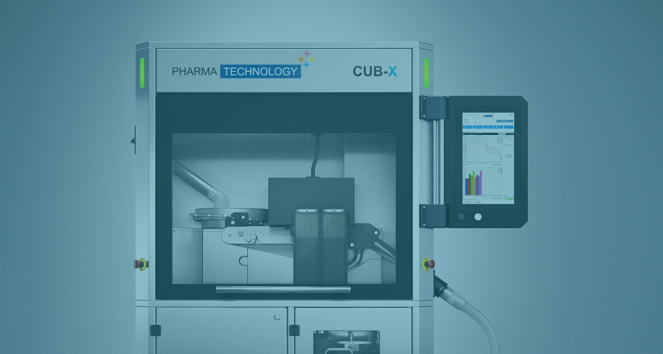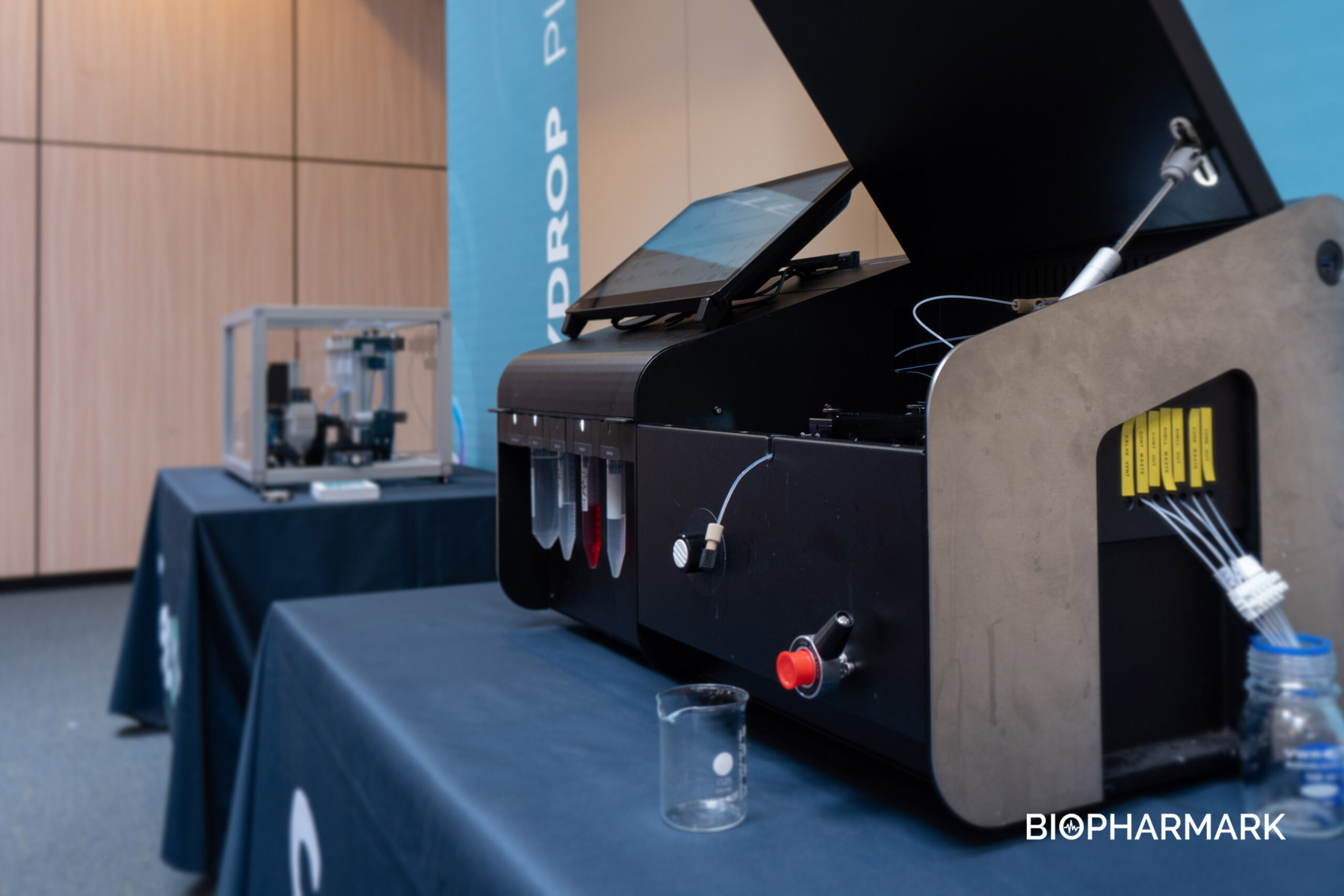 Designed by Biopharmark for Pharma Technology, this interactive digital interface recreates the experience of a real machine, showcasing how innovation transforms complex scientific technology into an intuitive and engaging experience.